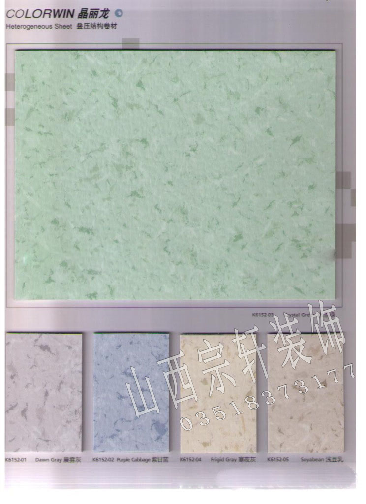 1、耐磨层:压延式工艺生产的高性能耐磨层,区别于普通的涂布式工艺,耐磨层表面更致密,在使用中表面耐污染,抗压等性能更优异,寿命更持久。